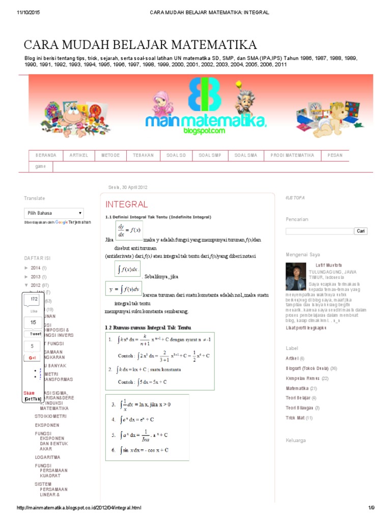 CONTOH SOAL MATEMATIKA INTEGRAL | Ida Blog